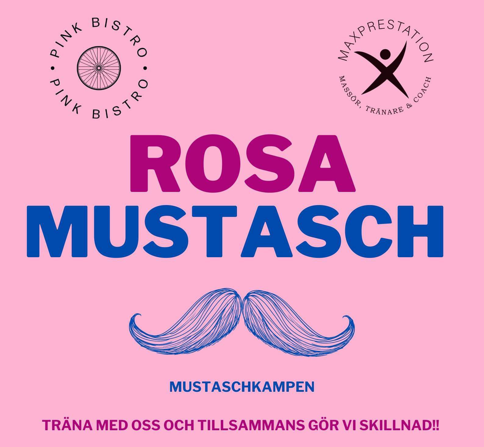 I Oktober 2023 gjorde Maxprestation, Maxprestation Sportsclub en seria av träningar och en avslutande kväll på Pink Bistro för att samla in pengar till Mustachkampen.
